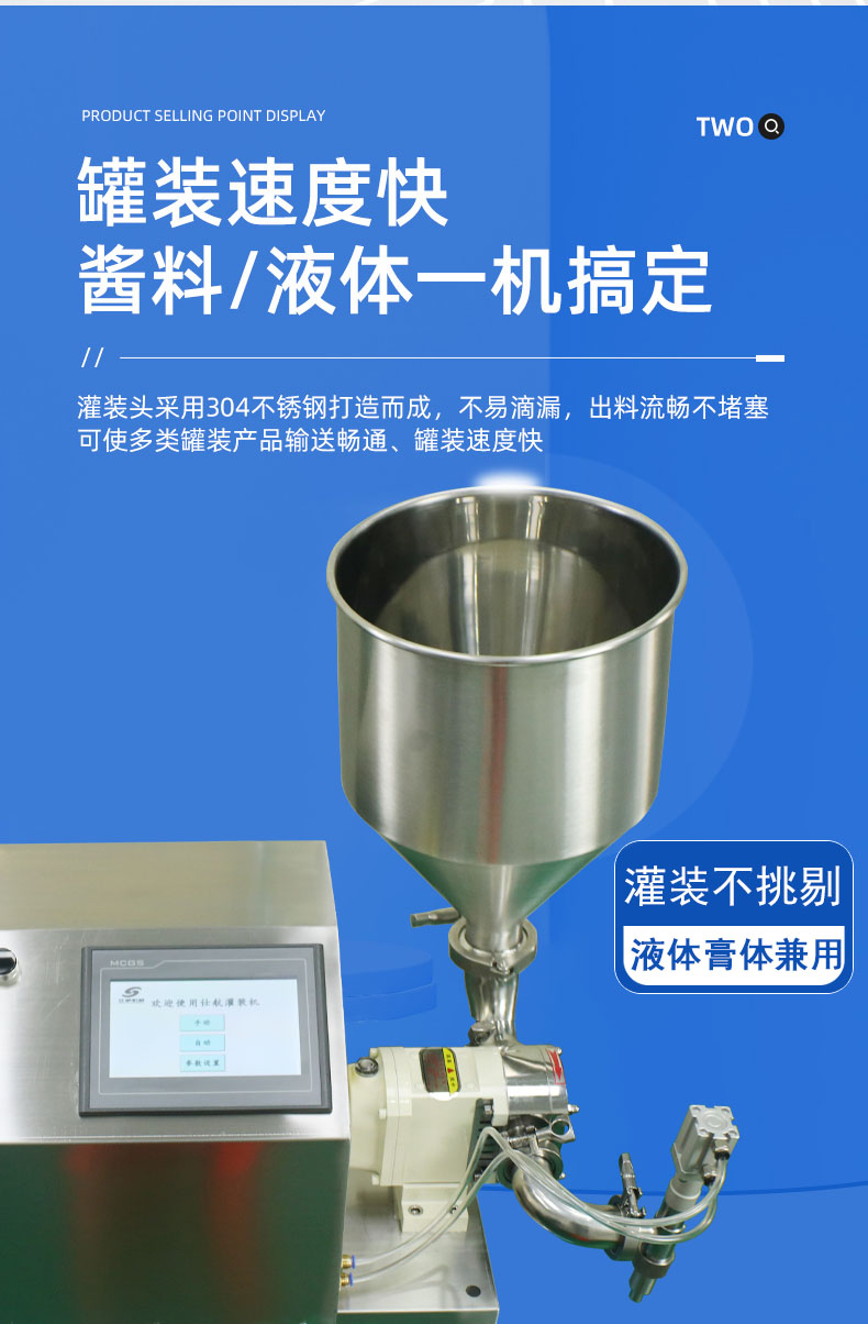 全新臥式設計,輕巧方(fāng)便,自動抽料,對於黏稠較大的膏體可加料鬥加(jiā)料。手動及自動相互切換功能:當(dāng)機(jī)器處於"自動"狀態(tài),機器按設定(dìng)速度,自動進行(háng)連續灌裝。而當(dāng)機器處於"手動"狀態,操作人員踩動踏板(bǎn),來實現灌裝(zhuāng),若(ruò)一直踩住不放,則也變為自動連續(xù)灌裝的狀態。防(fáng)滴漏灌裝(zhuāng)係統:灌裝時氣缸上下動作,帶動悶頭。